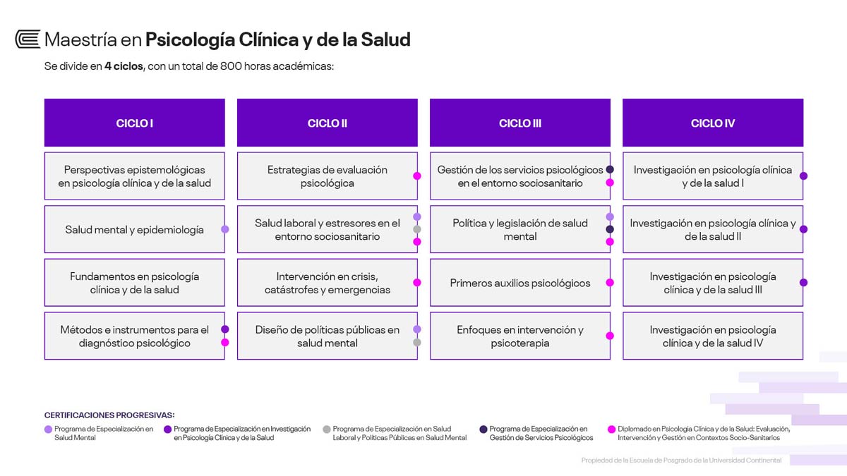 Luego de aprobar todos los cursos y de la sustentación de tu tesis, recibirás el grado de maestro en Psicología Clínica y de la Salud a nombre de la Escuela de Posgrado de la Universidad Continental.
